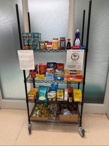 This food cupboard has been running now for the past month and is going very well. It operates only 1x/week in a very informal way. This time of the year those who have fresh produce are also dropping it off. By the end of the day there is very little left on the cart.
